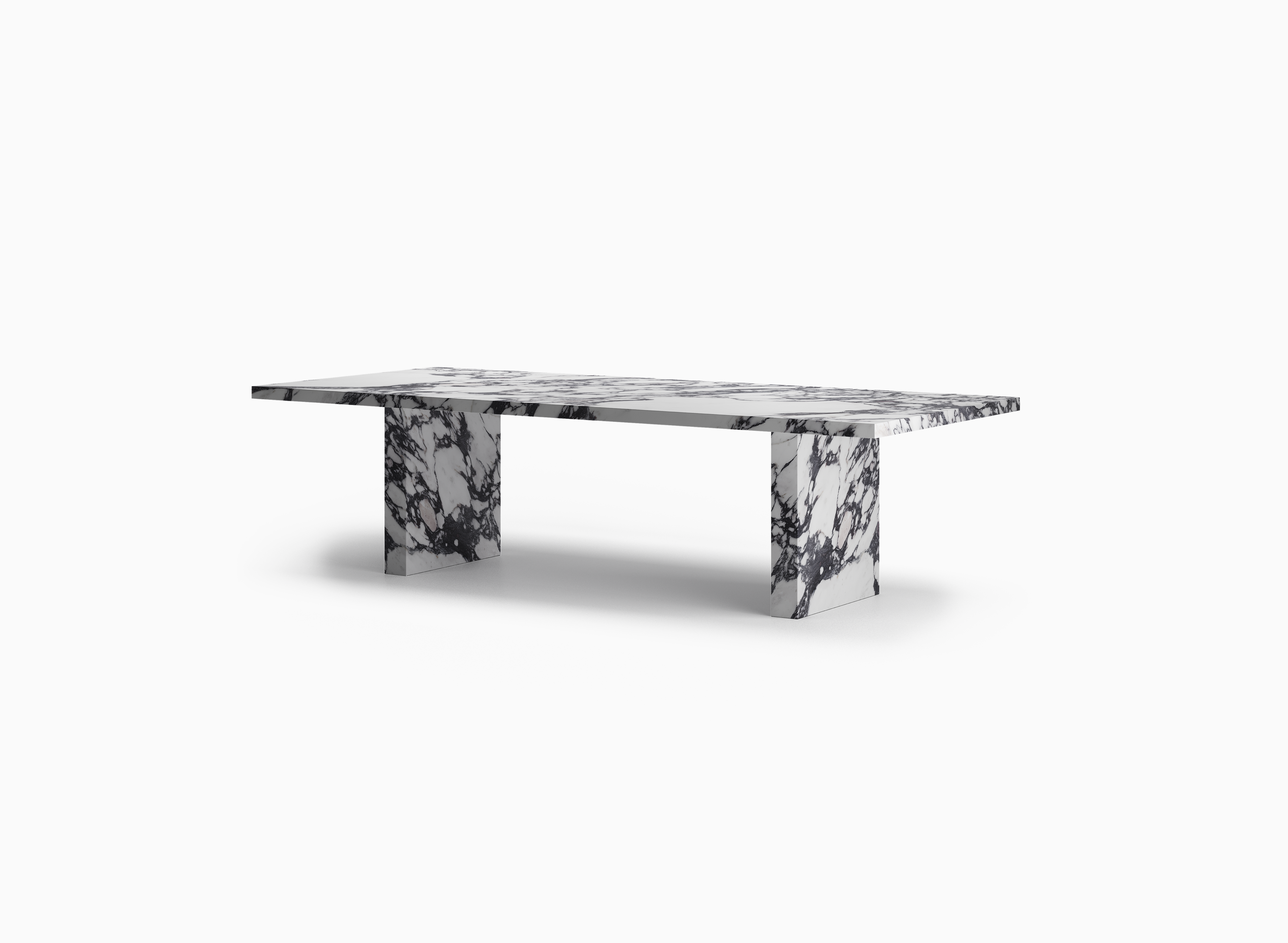 A sleek, timeless rectangular design with a two distinct legs, offering the perfect place to have dinner or host friends and family. Table can seat +6 people depending on selected configuration.